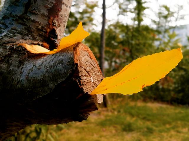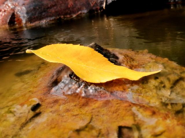 秋风吹过,层林尽染,金黄的落叶,落在地上,像铺了一层黄地毯;落在水面,轻悠悠地,像小船,顺风慢慢地荡走。
