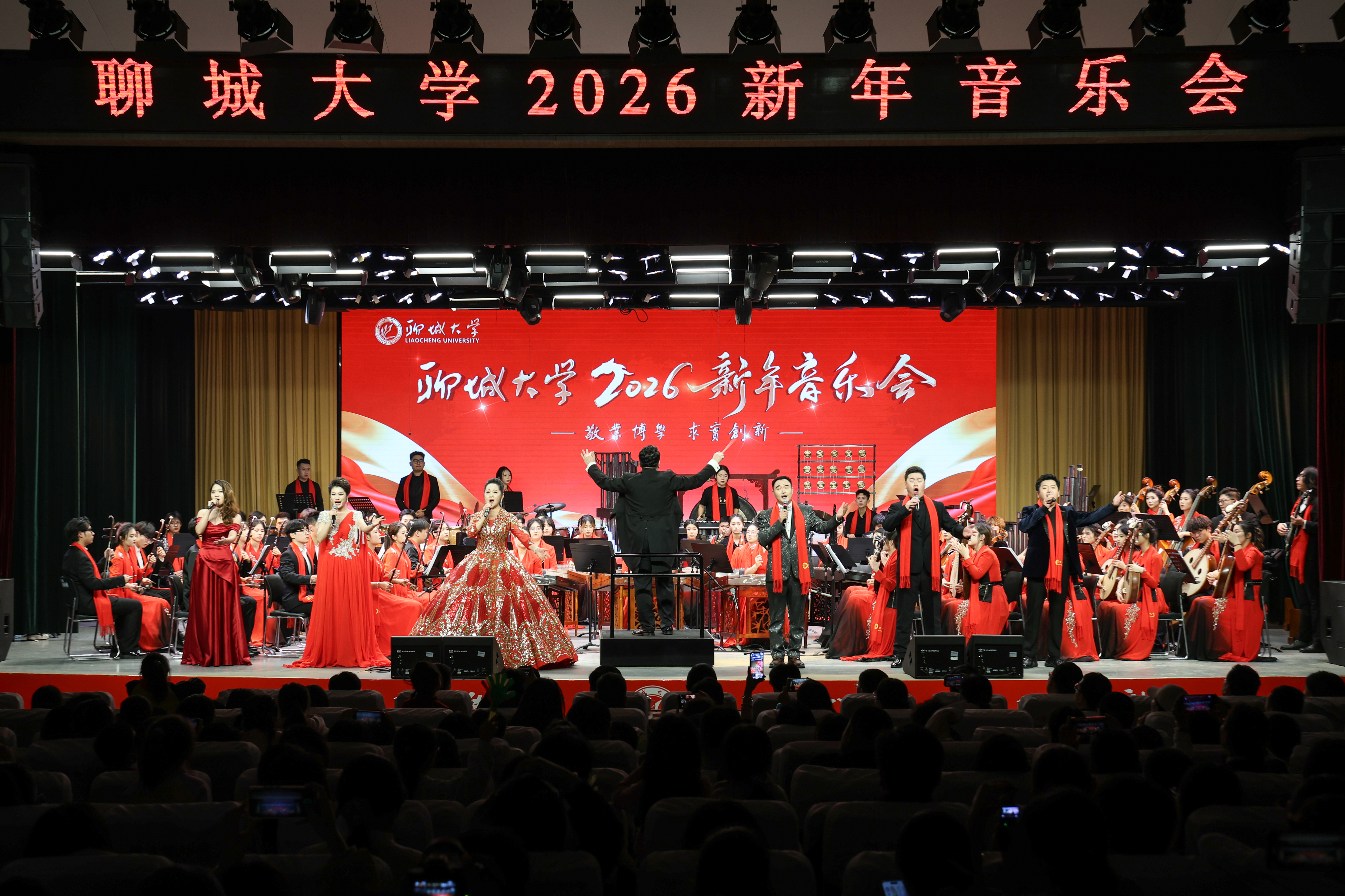 音乐会由校团委主办、音乐与舞蹈学院承办,涵盖民族管弦乐、西洋管弦乐、声乐合唱等多种艺术形式,呈现了一场跨越时空、融汇古今的视听盛宴,实现了艺术审美与思政教育的有机统一,展现了师生同心筑梦、笃行不怠的精神风貌。新的一年,聊大人将带着这份感动与鼓舞,回望来路、远眺未来,共同书写学校高质量发展的崭新篇章!