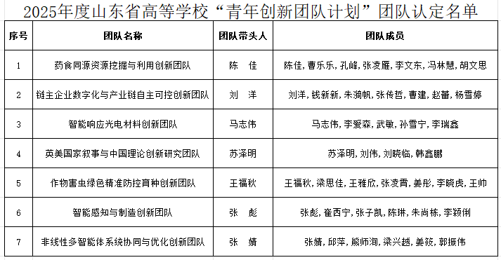 【深学笃行全会精神 锚定高质量发展】聊城大学7个团队获批2025年度山东省高校 “青创团队计划”立项