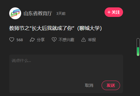 相关链接:山东省教育厅快手号:https://www.kuaishou.com/short-video/3x5vkmy8aissbye?