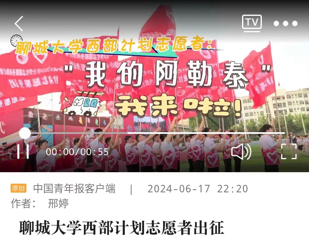 【编者按】6月17日,【中国青年报客户端】以《聊城大学西部计划志愿者出征》为题,对我校2024年西部计划志愿者出征进行视频报道。