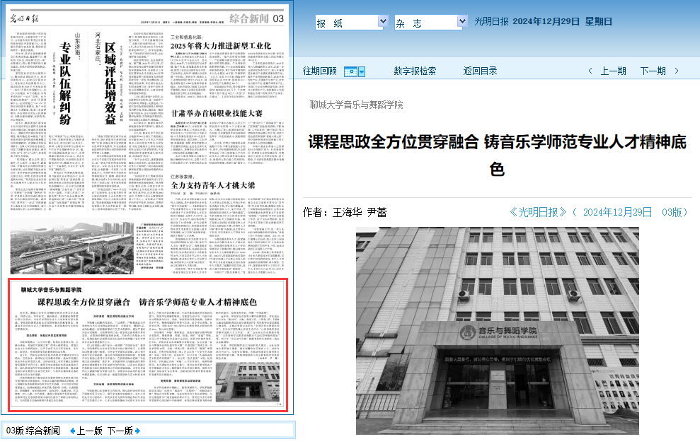 《光明日报》报道聊城大学音乐与舞蹈学院:课程思政全方位贯穿融合 铸音乐学师范专业人才精神底色