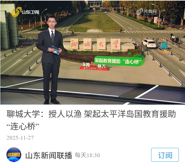 11月27日,【山东新闻联播】报道聊城大学:授人以渔 架起太平洋岛国教育援助“连心桥”,充分展现了我校太平洋岛国研究的突出成就。