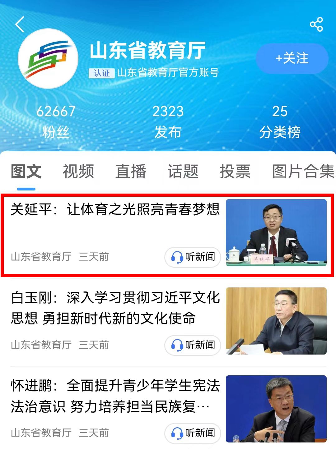 【编者按】12月8日,山东教育发布App的省教育厅官方号发布了聊城大学校党委书记关延平撰写的评论文章《让体育之光照亮青春梦想》。